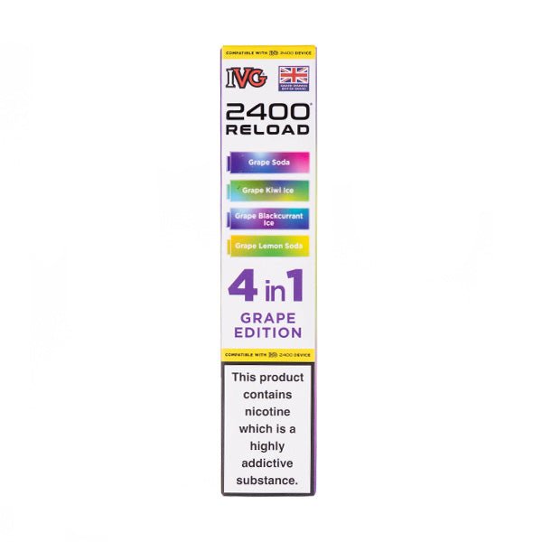 The Grape Edition IVG 2400 Reload Replacement Pods are designed for use in the IVG 2400 Reload Prefilled Pod Kit. The Edition series features four pods, each with a unique flavour.